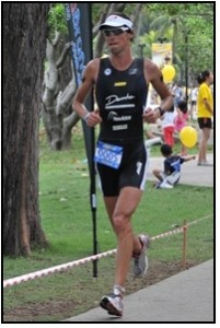 Estava tendo um prova excelente lutando de igual para igual com ambos e inclusive cheguei a liderar a prova por algum tempo próximo da segunda transição antes de iniciarmos a corrida mas no entanto logo nos primeiros kms da meia maratona já senti minha pernas totalmente esgotadas e não pude mais acompanhar o ritmo dos lideres. Sofri muito com forte calor e acabei perdendo mais duas posições na ultima volta terminando em 5º lugar.