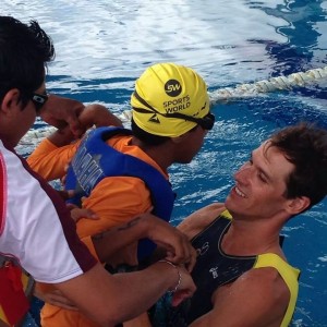 As atividades começaram no sábado de manhã com um aquathlon para a criançada entre 07 e 15 anos, incluindo uma bateria destinada para as crianças com necessidades especiais, onde eu tive o prazer de juntamente com a Nicola, ajudar um jovem em sua cadeira de rodas a completar o percurso de 150m de corrida + 25m de natação + 150m de corrida, e nos metros finais ele fez questão de caminhar até a linha de chegada e mostrar a todos nós presentes, uma grande lição de perseverança.
