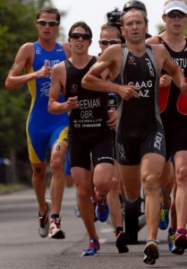 Com uma T2 bastante eficiente eu estava correndo ao lado dos lideres com apenas alguns metros. Sentia-me bastante forte porem parecia que estava faltando aquela “ultima marcha” e toda vez que eu tentava puxar o ritmo não encontrava a velocidade desejada em minhas pernas. Eu perdi o contato com as primeiras posições por volta da marca de 3km dentro da corrida, porem com uma terceira volta muito boa pude novamente me aproximar no entanto não havia mais tempo para ultrapassar os demais competidores tendo assim que me contentar com mais um 5° lugar em uma Copa do Mundo.