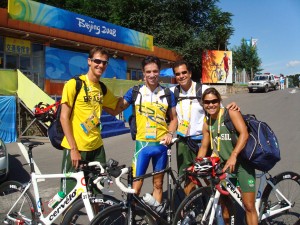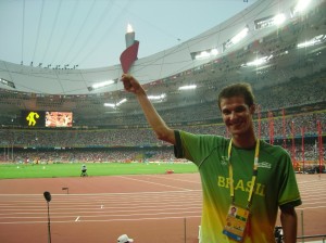 Oi pessoal, hoje dia 15 de Agosto eu viajei de Jeju – Coreia direto para a Vila Olimpica em Pequim! Tudo ocorreu muito bem durante nossa viagem, apesar de um pouco de tensão na hora de fazer o check in, pois cerca de 30 outros triathletas estavam no mesmo vôo e o medo de alguma bicicleta não chegar ao destino de Pequim era muito grande tudo deu certo e todos os atletas receberam seus equipamentos. Desde o desembarque no aeroporto já pude notar que a cidade respira o clima olímpico e por toda parte se podem ver os arcos olímpicos enfeitando as avenidas e monumentos. O transporte demorou cerca de 30 minutos ate chegarmos à Vila Depois de passarmos por todo o esquema de segurança fui caminhando junto com meu técnico Cali e com minha companheira de equipe Mariana Ohata ate nosso prédio onde a delegação brasileira esta hospedada. Nessa caminhada cruzei com inúmeros atletas de diversas nacionalidades todos, lógico, uniformizados. Uma curiosidade bastante comum entre todos os atletas é o ato de olhar para algum atleta de diferentes paises é tentar adivinha em qual modalidade determinado atleta que cruzamos compete, pois tão variado quanto as cores das camisetas de todos os pais também é o biótipo do corpo dos atletas indo desde o ginasta baixinho e leve ate o jogador de basquete hiper alto e forte! Um local bastante interessante que já tiver a oportunidade de visitar foi o refeitório. Uma tenda enorme bem no meio da vila onde se podem encontrar todos os tipos de comidas imagináveis ate mesmo aquele tentador Big Mac! Que lógico vai ficar só por dia 20 depois da minha prova! Bem não sei mais o que dizer no momento, apenas registrar mais uma vez como estou feliz e orgulhoso de estar fazendo parte dessa enorme festa que é o evento olímpico e que espero com ansiedade o dia que finalmente poderei entrar em ação e representar nosso Brasil.