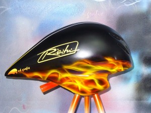 Eu usei esse capacete na primeira vez que venci o Internacional de Santos em 2009 e também no Ironman do mesmo ano que fui vice-campeão. Gosto de usar materiais personalizados. Todo atleta gosta de se destacar com algo a mais nas fotos. O Ed é um ótimo profissional e artista nessa área de customização e sempre fiquei satisfeito com todos os trabalhos que ele realizou para mim.