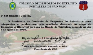 O Exército do Brasil parabeniza Reinaldo Colucci pela medalha na Hungria.