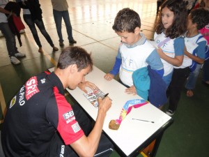 Ainda na segunda feira a tarde eu tive outra surpresa. Após o treino de natação eu fui convidado a ir até o ginásio da escola do SESI em São Carlos para bater um papo com os alunos. Foi super bacana, pois eles queriam saber de muitas curiosidades dos Jogos Pan-Americanos, e lógico, queriam ver a medalha que eu conquistei.