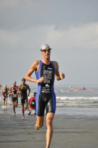 Com a temperatura da água em torno de 22 graus a roupa de neoprene foi liberada para essa competição.Tive um largada limpa e consegui nadar tranquilo até a primeira bóia, virando a mesma junto ao atleta Danilo Pimentel. Nadamos lado a lado até o final dos 1500 m e entramos na transição desgarrados dos demais atletas da elite. Com alguns problemas para tirar a roupa de borracha, Danilo ficou atrás e então parti para ciclismo com uma pequena vantagem. Me aproveitando dessa situação, forcei o ritmo e consegui logo nos primeiros três quilômetros abrir cerca de 30 segundos. Continuei forçando e em torno da metade dos 40 km do ciclismo, já tinha quase dois minutos para o segundo grupo, onde agora além do Danilo, também estavam Guilherme Manocchio, Iuri Vinuto e Flávio Queiroga.