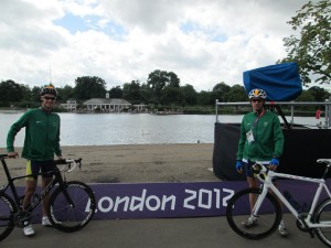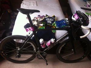 Logo após a prova feminina, foi a hora dos homens fazerem o reconhecimento do percurso do ciclismo. Está tudo preparado e pronto com a minha "magrela"!